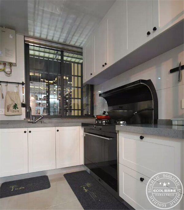 原先廚房大理石做的,感覺很單薄;家居設計師果斷建議換成整體定制櫥柜,美觀實用兩不誤!