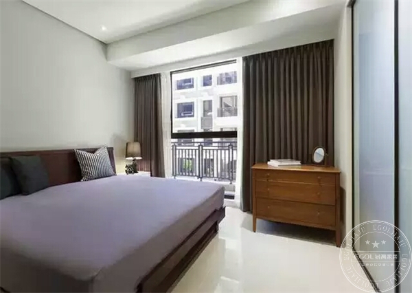 臥室以暖色系列為主,搭配亮白色的地磚,寬敞而明亮,沒有過多繁雜的設計。我最喜歡床頭的燈飾,燈光很柔和,不刺眼。