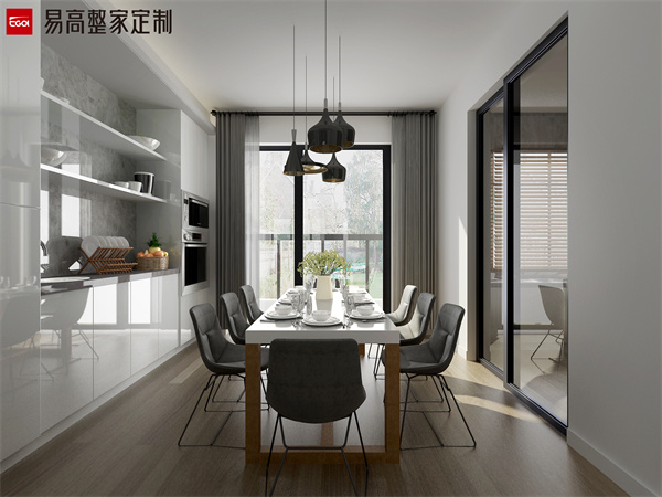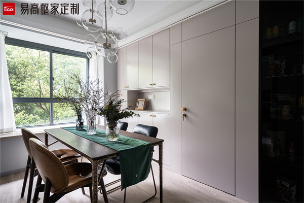 餐邊柜設計定制的時候可以考慮安裝一排抽屜實用性更強,一些小的物品可以收納到抽屜里面,每次拿取也非常方便,一目了然,同時也避免了開放區的臺面上過于雜亂。餐邊柜的開放區主要是放置一些常用的物品,也可以減輕廚房櫥柜的收納壓力放置一些小家電等等,餐桌上也可以保持干凈整潔,看起來更加舒適干凈。餐邊柜可以遵循“二八原則”,根據日常生活需要設置開放格,將平時隨時想用或拿取的物品放在外部,順手就能拿上,便于日常使用。