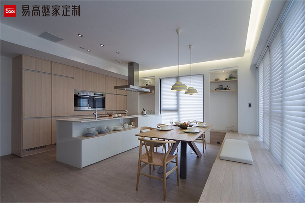 現(xiàn)在的生活條件越來(lái)越好了,對(duì)于家裝的要求也越來(lái)越高了。因此家里也添置了不少的廚房電器和家具。現(xiàn)在廚房里的大大小小電器不少,為了讓廚房的收納更加整潔合理,除了需要合理規(guī)劃廚櫥柜的布局設(shè)計(jì)之外,餐廚一體化設(shè)計(jì)可以有效的利用空間,將電器都規(guī)劃設(shè)計(jì)成嵌入式設(shè)計(jì),合理有效地收納這些家電,并且還可以定制收納柜儲(chǔ)物,讓餐廚一體化設(shè)計(jì)可以實(shí)用又美觀(guān)。