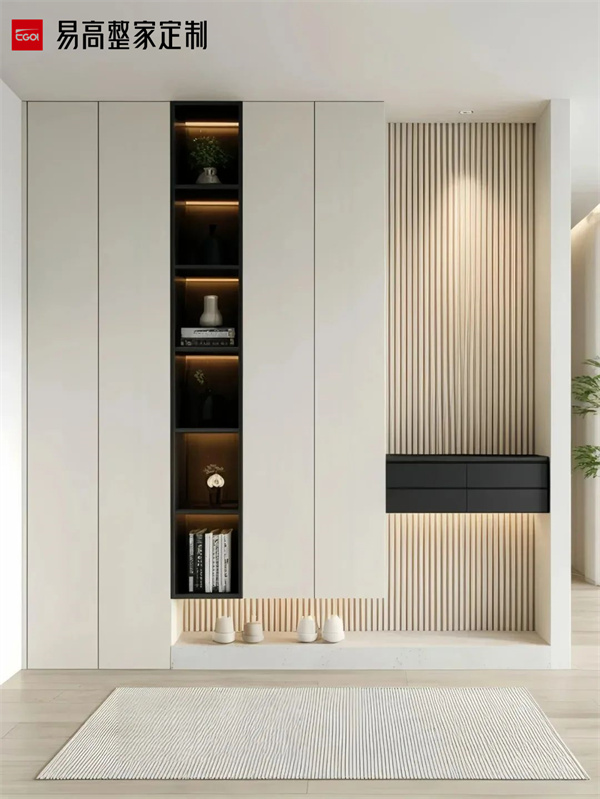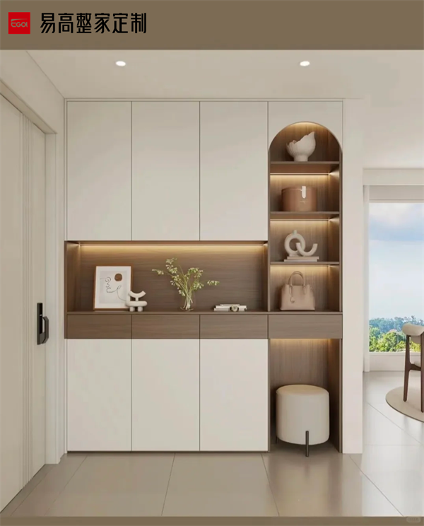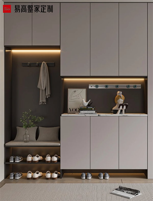 風格協調需與整體家居統一,例如現代簡約風可搭配玻璃或金屬飾條,中式風格可融入格柵透光板。若空間狹小,可采用嵌入式或壁掛式設計節省地面空間。對于有孩或養寵的家庭,可增設兒童物品區或寵物用品專用層板。墻面預留裝飾畫位置提升品位。裝飾不宜多,適度留白更能體現高級感。    以上就是關于如何打造一個既美觀又實用的玄關柜?一個精心設計的玄關柜,不僅能讓日常出入更加便捷有序,更能讓每次回家都成為一次愉悅的體驗。通過以上設計,玄關柜不僅能實現高效收納,還能成為家居的視覺焦點與情感過渡空間。好的設計不在于多么華麗,而在于能否讓生活變得更簡單、更美好。