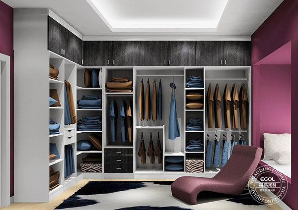 這種衣柜一般出現在封閉環境下的衣帽間,因為衣帽間的衣柜一般不用安裝門,節省了一筆開銷,挑選衣服時也比較一目了然,缺點就是可能不好好整理的話,進入衣帽間就會覺得比較亂了。