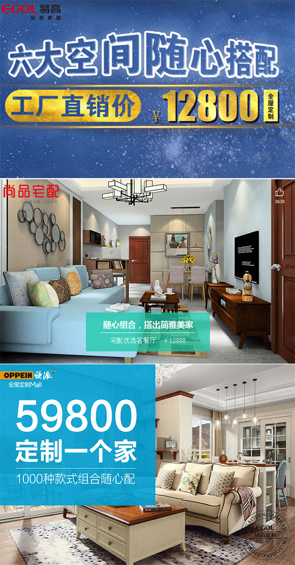 從早期的“衣食住行”消費套餐再到汽車房地產等大宗消費品,如今家具建材行業也逐漸風行起來。行業內大品牌諸如 歐派、易高、索菲亞,紛紛推出16800、19800元全屋套餐活動。