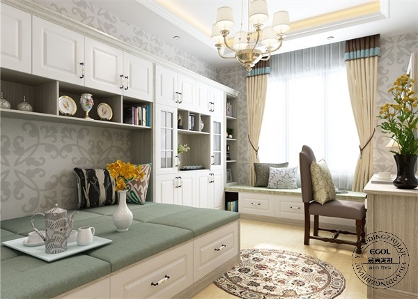 三室兩廳簡歐定制家具設計方案——榻榻米書房