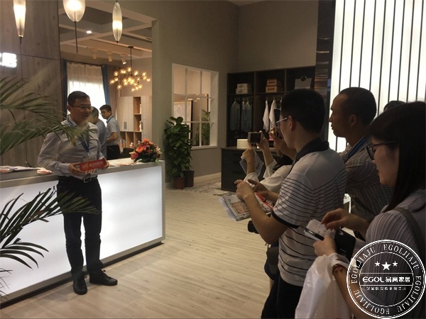 易高家居所在的保利世貿博覽館2E27展位,吸引了來自全國各地的客戶前來參觀體驗、咨詢合作。