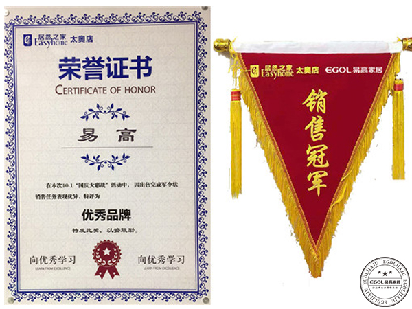西安作為西北區域核心城市,建材市場及定制行業的競爭日趨激烈。居然之家太奧易高店在10月份開展的“國慶大惠戰”活動中,因表現優異,獲得“優秀品牌”稱號。同時,在當月居然之家定制家居品類中銷量排行第一,榮獲“銷售冠軍”稱號。