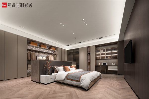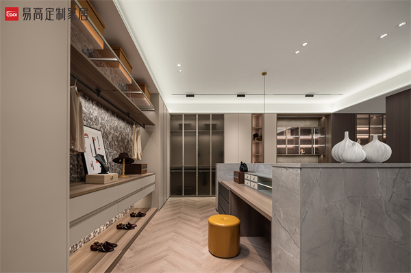 半開(kāi)放收納體系滿足對(duì)私密空間的多樣追求,以克制簡(jiǎn)潔的線條,鋪設(shè)出素簡(jiǎn)、立體的空間肌理,在燈光渲染下延伸出和諧寧?kù)o的光影之美。實(shí)用的細(xì)節(jié)處理和明確的功能劃分,詮釋精致有序的生活方式。
