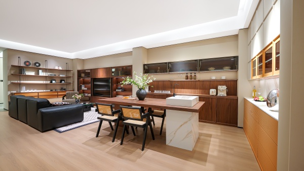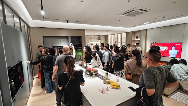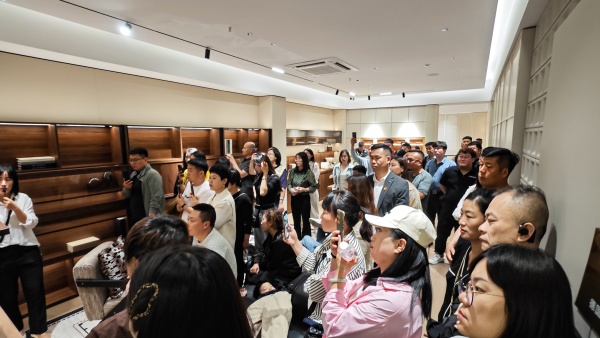 與會嘉賓在工作人員的帶領下,移步700㎡高定展廳品鑒五大系列新品。此次新品在產品功能、空間設計、工藝創新、環保材料應用等多維革新,以獨特魅力重塑高端生活內涵,令現場觀摩嘉賓贊不絕口。